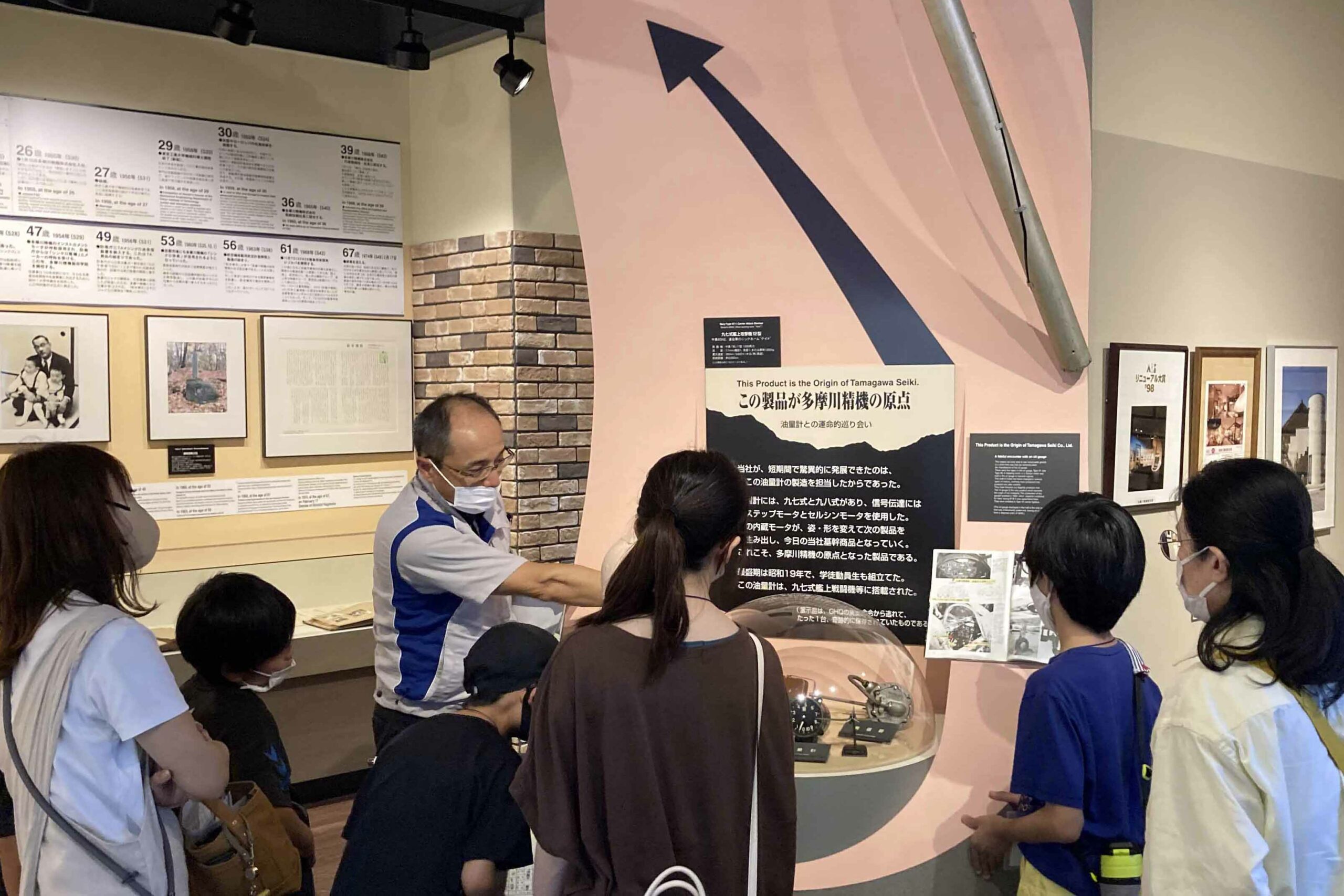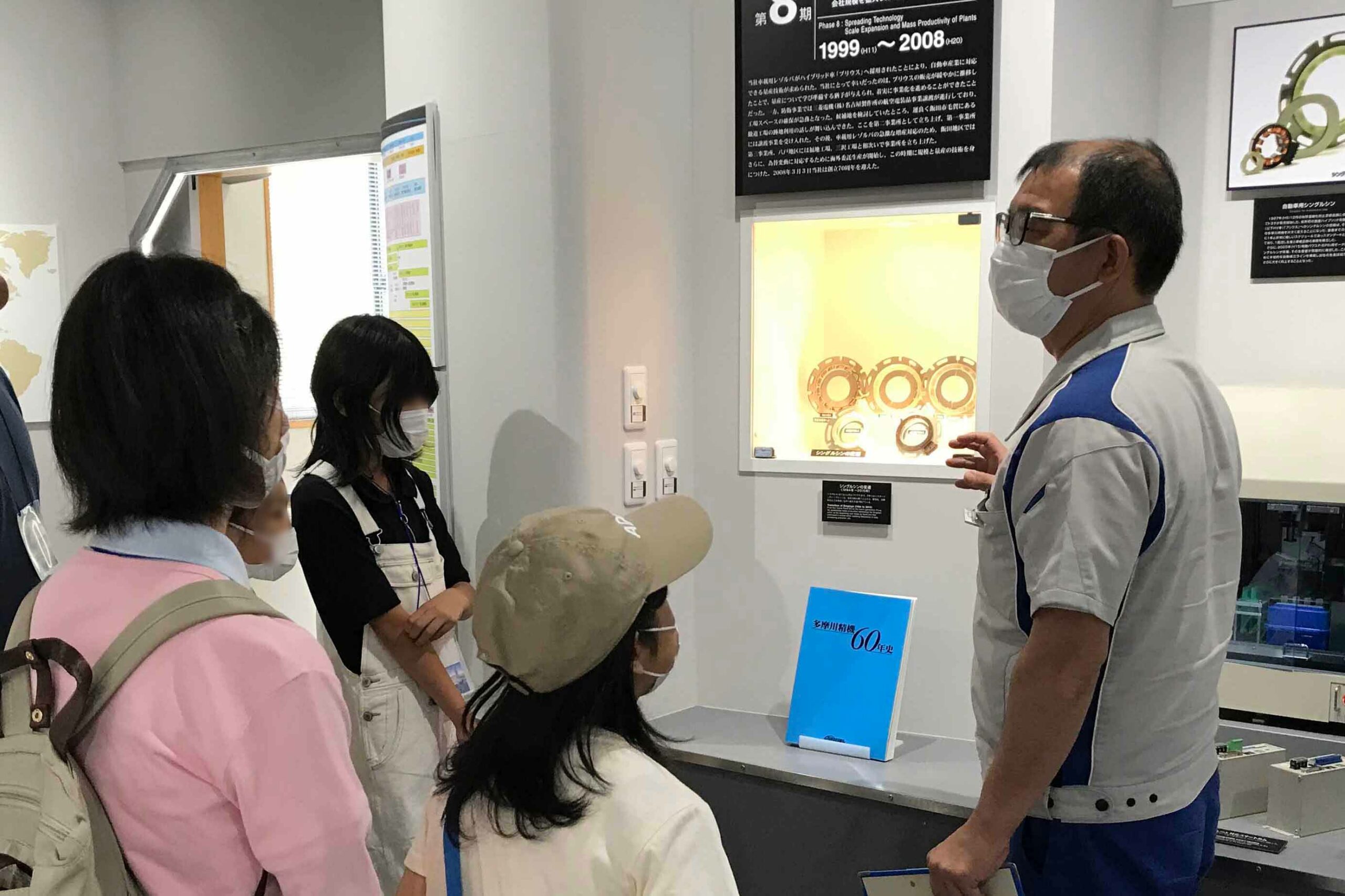 まず、当社の製品がどのような航空機に搭載されているか、また大人になる頃には航空機がどのように生活に関わってくるかなどの説明をし、その後、歴史館を案内しました。