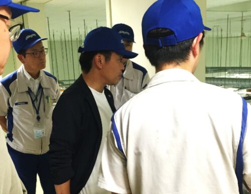 製品紹介の中では、新幹線で採用されている速度センサのほか、ジャイロセンサが田植え機の直進制御に採用されていることに、知事も非常に驚かれていました。現場視察では大型モータの生産ラインをご覧いただき、ネットワークカメラやペーパーレスの運用などに非常に興味深い様子でした。