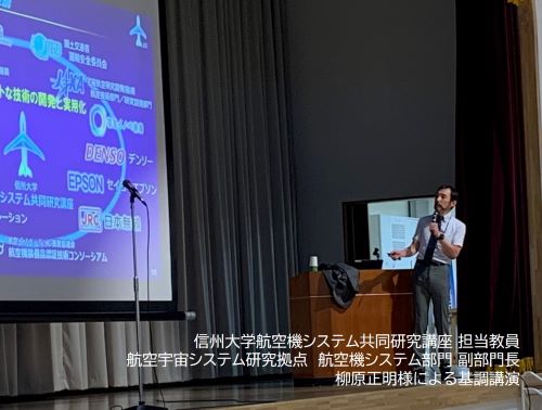 SURCASは2016年10月に設置された前身の航空宇宙システム研究センターの頃より、地域ならびに関連産業界との交流・情報発信を目的に、毎年 年次シンポジウムを開催しており、9回目となる今回のシンポジウムでは、SURCASと信州大学 南信州・飯田サテライトキャンパス(エス・バード内)で開設している信州大学 航空機システム共同研究講座が、ともに2024年度をもって一応の区切りを迎えることを記念して、航空機システム共同研究講座の8年間を振り返るとともに、社会に巣立ち活躍している講座修了生4名を招いて、飯田での思い出や講座で学んだことが今の仕事にどう活かされているかなど現在の状況を報告。また基調講演では、当講座の担当教員である柳原正明様により「信州大学航空機システム共同研究講座の8年 ~航空機システムから次世代空モビリティへ~」と題してご講演いただきました。