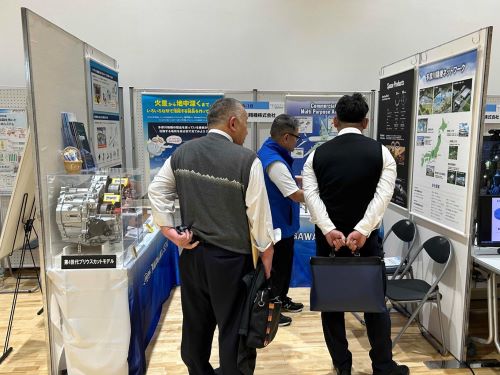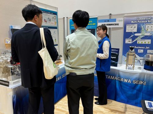 当社はハイブリッド車やEVなどに搭載される角度センサ「シングルシン」やビジネスジェット機のエンジン出力用レバーなど航空機用の各種製品を展示し、特にシングルシンの搭載状況が分かるエンジンのカットモデルやeVTOL用の高出力・高密度モータは多くの方からの注目を集めました。環境配慮につながる当社の製品や技術を地域の企業・団体の皆様に紹介する良い機会となりました。