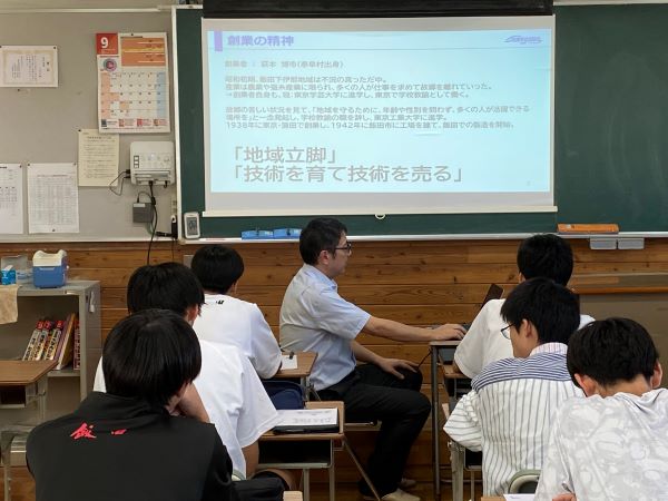 聴講した生徒からは「地元にいながら世界とつながる仕事ができることはとても魅力的」「一刻も早く都会に行きたいと考えていたけれど、飯田に帰ってきて故郷へ貢献することもすごく素敵だなと考えを改めた」「会社の基本理念や将来像も立派なものだったので、就職候補として考えたい」などの感想が寄せられました。