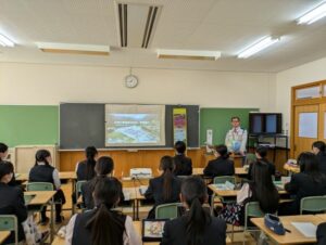 本社と同じく長野県飯田市にある飯田女子高校で12月10日(水)に行われた「総合社会」の講義で、当社の社員が講師を務めました。講義を選択している2学年の生徒約30人に、仕事のやりがいや会社の特色などを伝え、今後の進路選択にエールを送りました。