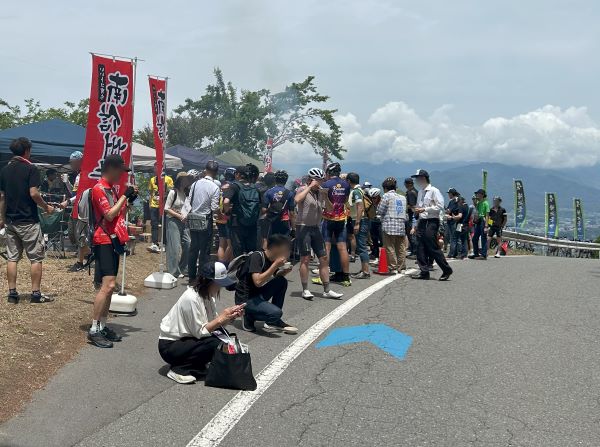 今年は海外の7チームを含む16チーム87人が出場し、熱戦を繰り広げました。沿道では地元の小学生や園児たちが小旗を振って声援を送ったり、地元有志らが焼き肉を振る舞ったりのコーナーもあり、大会本部での観覧者を含めると約2万人が観戦しました。