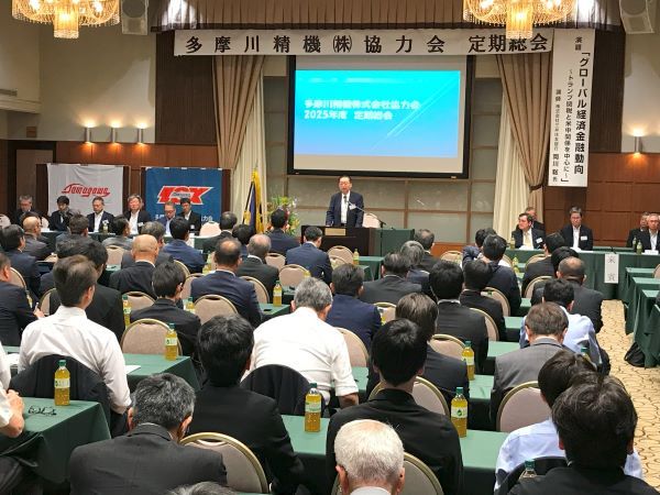 当社の取引企業でつくる多摩川精機株式会社協力会の2025年度定期総会が6月6日(金)、長野県飯田市内で開かれました。会員企業からは88社の計147名が出席し、当社からは萩本康夫会長や松尾忠則社長ら13名が参加しました。