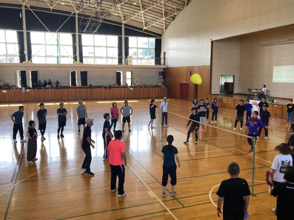 写真右上:変形ボールを使う「ワンバウンドふらば~るバレー」