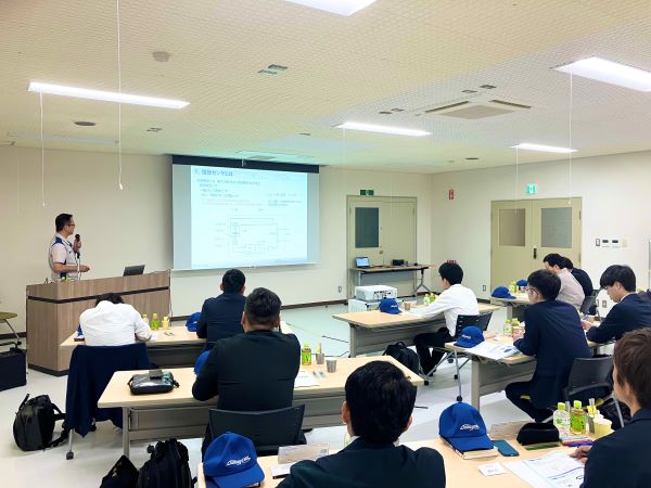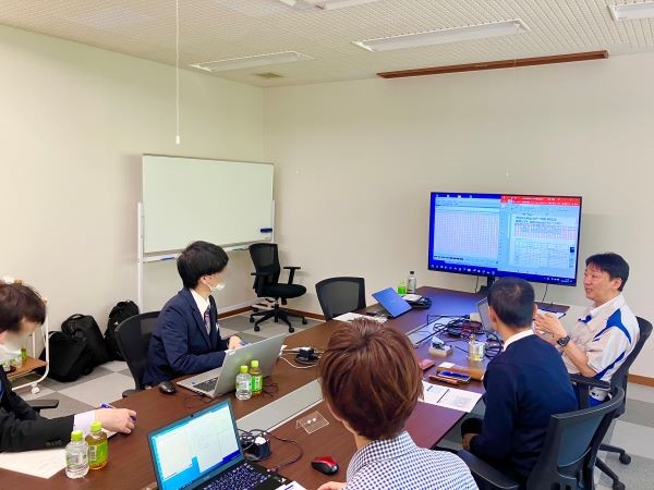 第50回の特別企画として、前日の12日(木)には「IMUセミナー入門編」もありました。こちらは4人が参加し、IMUの基礎知識や種類をはじめ、IMUを活用した建機や農機、自動運転技術といった用途事例を学んだり、シミュレータソフトを使った慣性演算の基礎に触れたりしました。机を囲んだ対面方式で、当社の担当者が一人ひとりとコミュニケーションを取りながら、講義を進めました。質疑応答も活発に行われ、終了時間を当初予定より1時間延ばしました。