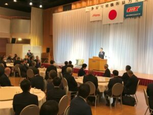 当社の取引企業でつくる多摩川精機株式会社協力会の2026年賀詞交歓会が1月9日(金)、長野県飯田市内で開かれました。会員企業のうち、89社の148名が出席。当社からは萩本康夫会長や松尾忠則社長ら15名が参加しました。